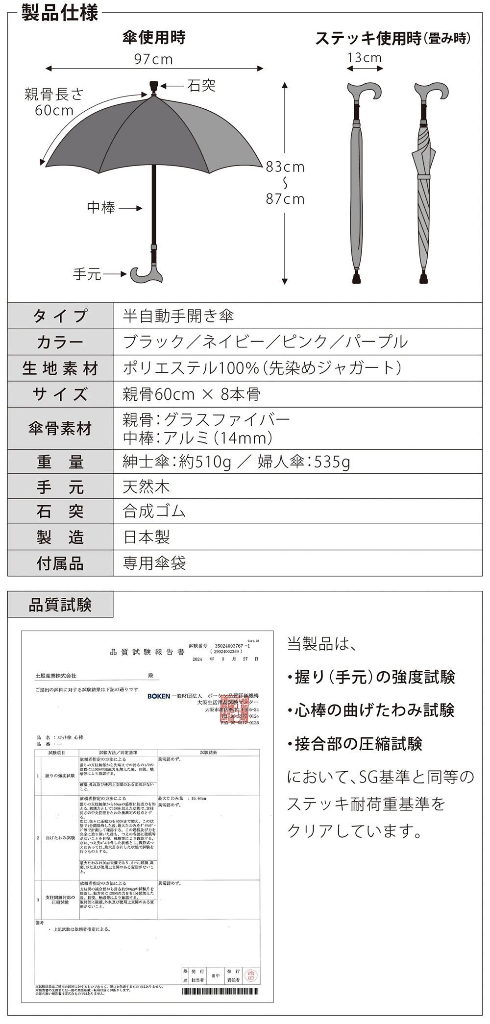 その二つの伝統が融合して生まれたのが、2in1仕様のアンブレラステッキ「UNICO ステッキ傘 Lite」です。