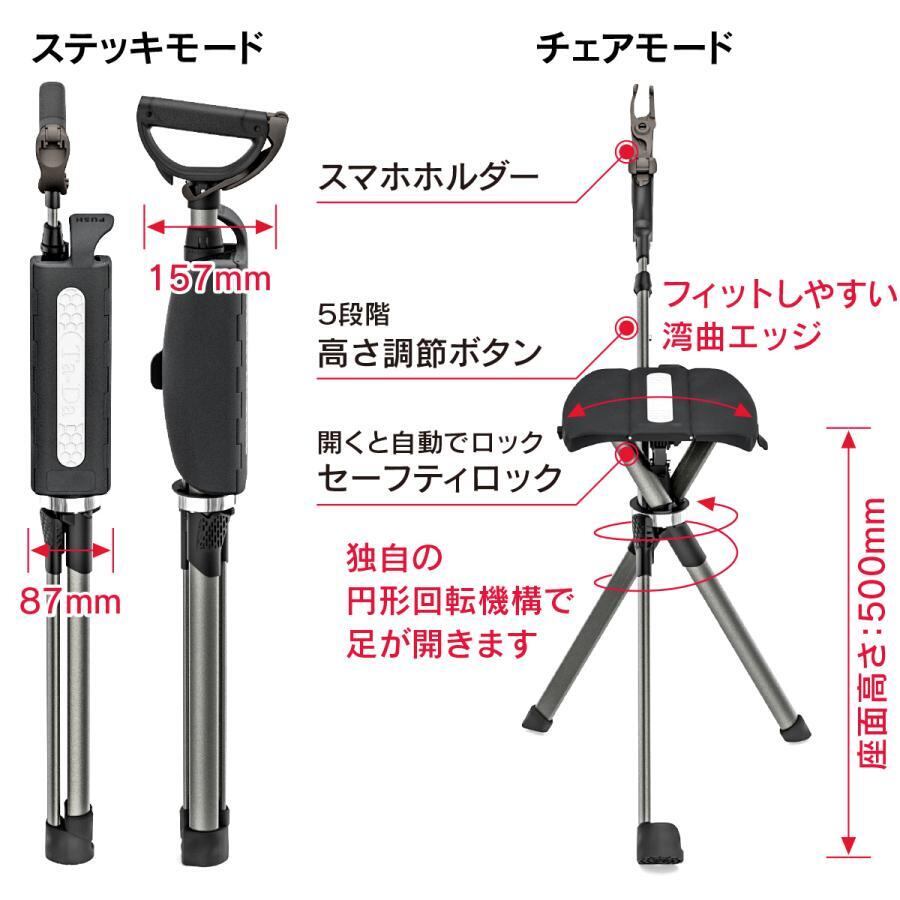 2秒で簡単に開脚・折りたたみできる、広い座面の新型ステッキチェア!