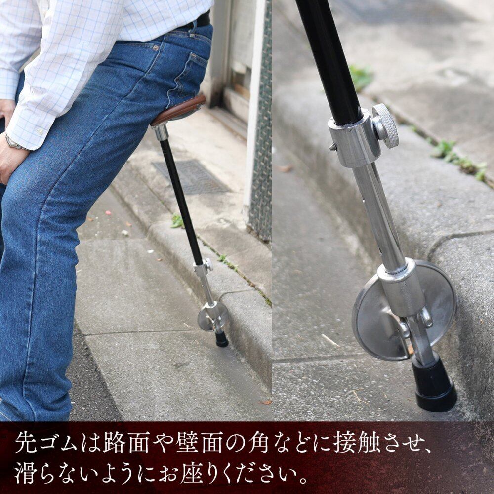 ・椅子としてお使いになる際は、先ゴム部が滑って後退しないよう、先ゴムは路面や壁面の角などに接触させ、お座りになる背後に人などがいないよう、お気を付け下さい。