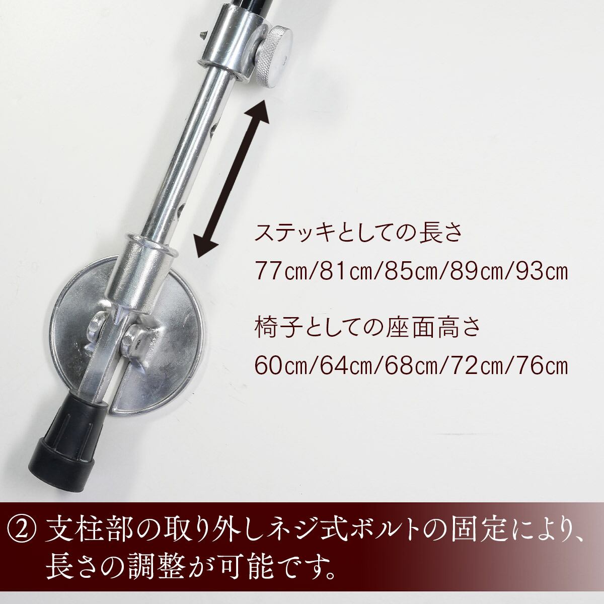 ステッキ状態時の長さ(5段階調整) 77cm/81cm/85cm/89cm/93cm
