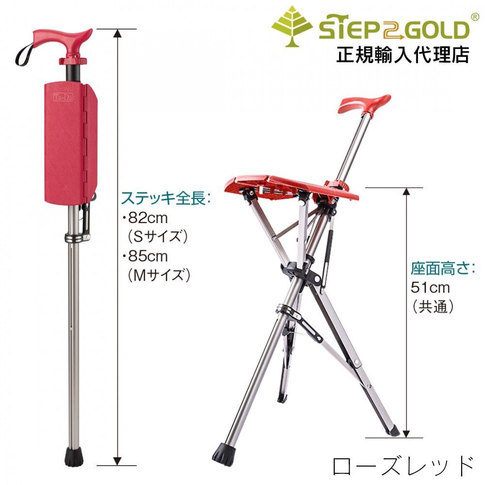 Ta-Daチェアー ローズレッド 【ワンタッチで椅子になるステッキチェア タダチェア】